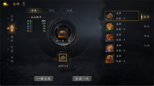骑具可以提高角色属性,骑具强化功能可以进一步提升属性,合成骑具的材料均可在坐骑市场抽出,品质越高的材料越容易合出高品质的骑具。