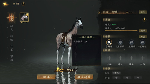 坐骑特性可以消耗书册升级,提高属性效果,特性品质越高效果越强