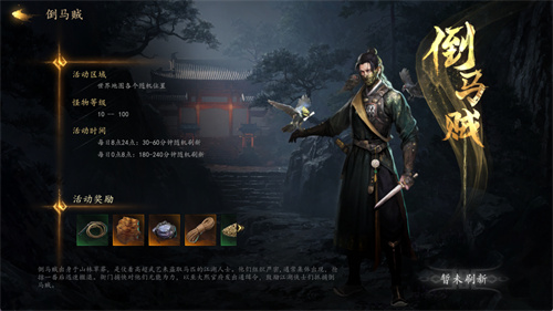1、倒马贼活动区域:月关郊外、东长滩郊外、南长滩郊外、西长滩郊外、北长滩郊外、云来村郊外、龙门村郊外