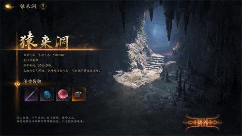 猿来洞:深山老林,千年溶洞。雾气缭绕,猿啼不止。毒花奇株与江湖秘辛皆埋藏此处,引无数侠士逐鹿。