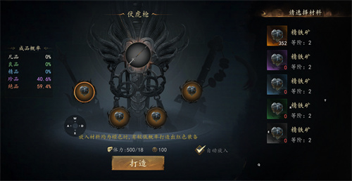 5、放入材料均为橙色时,有较低概率打造出红色装备。