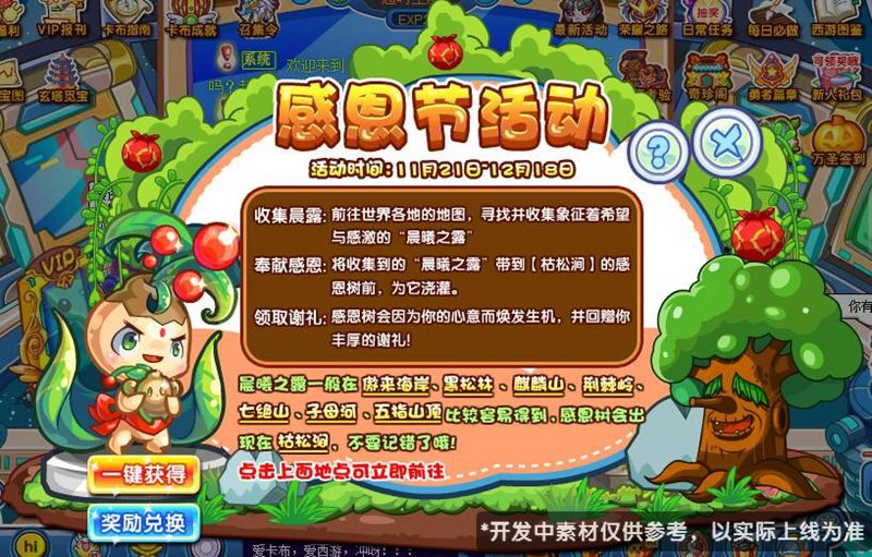 收集晨露,浇灌感恩树,即可领取丰厚的谢礼!