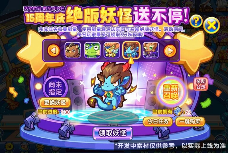 完成任务收集能量,使用能量激活法阵即可召唤绝版妖怪。活动期间,每名玩家最多领取5只妖怪哦!