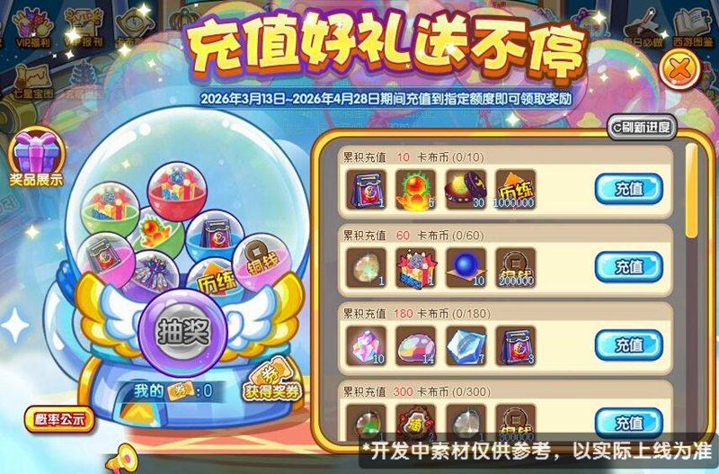 活动期间充值到指定额度即可领取奖励!