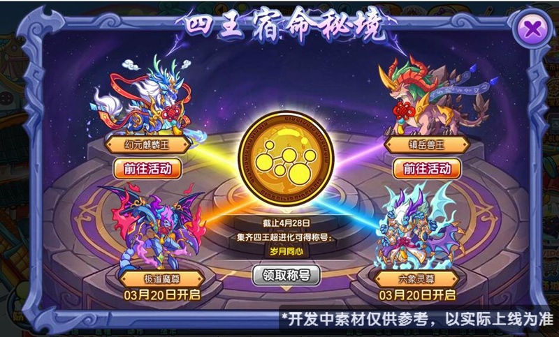 更新内容:集齐四王超进化可获得称号“岁月同心”