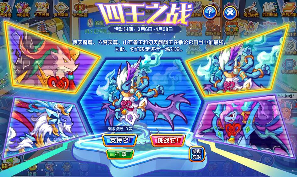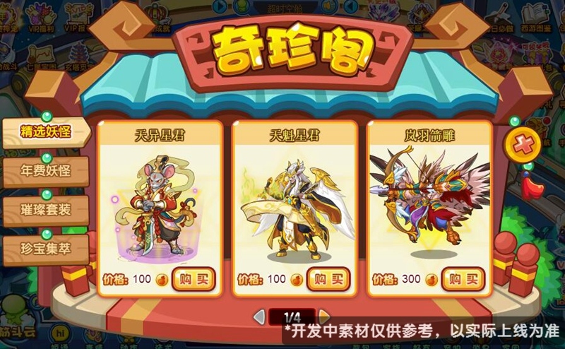 1、 精选妖怪:新增2月VIP天异星君,已拥有的不可再次购买