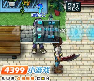 这个任务比较简单,接完之后,加鲁博士的头上就感叹号就变成了问号,代表人物完成,点击加鲁博士,选择任务