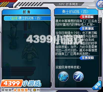 勇士的试炼四的任务目标是通过中等难度的废气工厂区,然后回来向神秘老人汇报。
