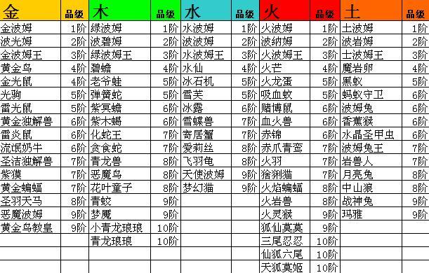 上面这五幅就是官方给出的五系阶级(其中也有阶位错的).熊猫属于神宠不在这列.