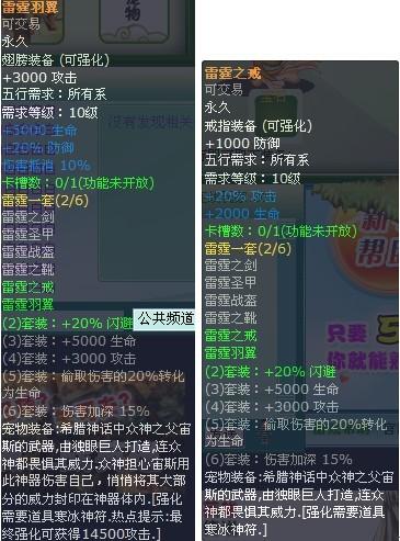 为迎接新大陆地图石阵的开放,运营人员为广大用户的爱宠量身制作的极品装备——雷霆套装。雷霆套装不仅可以通过消灭石阵怪物获得,也可以通过神秘商店购买与开启娅瑟宝鉴获得。让我们先来一睹雷霆套装的属性风采吧!(部分)