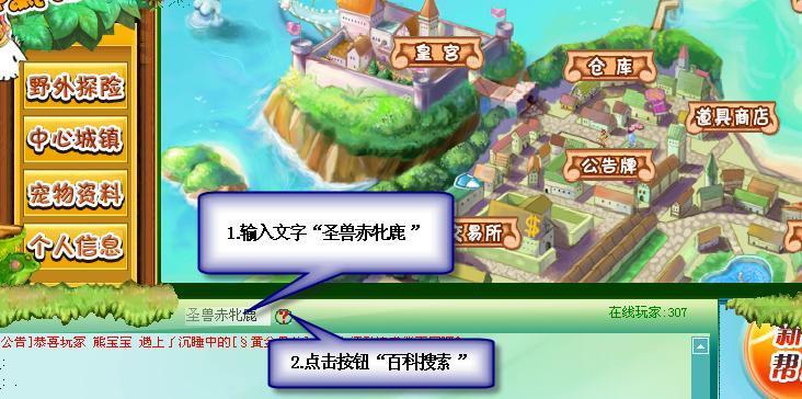 1.在游戏中的百科栏,输入你所想搜索的道具名称、怪物或宠物名称。只要你在游戏中见过的道具,都可以在百科上面查看物品介绍。图1