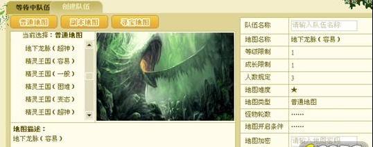 进入天梯魔塔以后,点选游戏界面中的上方“创建队伍”页面,如上图,则可以来到创建队伍页面,在这里你可以方便的选择你想去冒险的地图,此外,还可以自定义队伍的名字,以及设置队伍的密码,其它玩家想进入队伍必须输入密码,留空则为不设置密码。最后选择队伍创建完毕就可以进入组队界面。