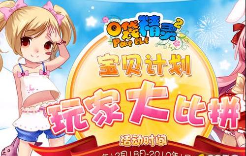 2009年12月18日至1月11日,《口袋精灵2》全服震撼出击,最萌宠物大PK“宝贝计划”活动,欢迎玩家踊跃报名参加!只需在活动专题中,展示自己的爱宠或者你自己,就有机会获得《口袋精灵2》送出的包括新神宠礼券在内的各种旷世豪礼!