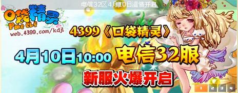 4399《口袋精灵》电信32区将在4月10日星期六10:00 盛装亮相。十二大活动,九重豪华大礼,让你应接不暇,惊喜不断,更让你的周末过得充实快乐。
