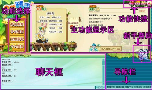 3. 主功能显示区:主要是显示游戏全部内容的地方