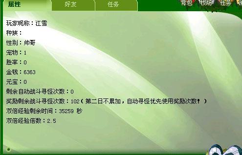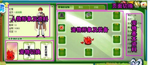 点击后”主功能显示区”会显示宠物的资料,你可以在这里看到宠物的资料,如果背包里有对应属