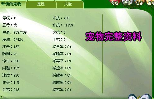 宠物完整属性: