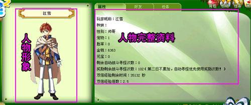点击后”主功能显示区”会显示人物的完整资料,你可以在这里看到你个人的资料。