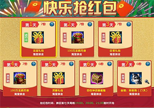 活动说明:活动期间的19点、20点、21点,系统将给玩家发送大量红包,玩家点击右侧的红包即可抢红包,大量绑金、珍贵道具奖励等您来抢!