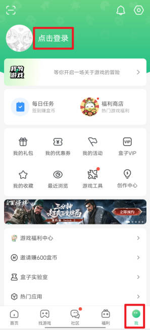 2、点击下方导航中【我】,点击【点击登录】,登录账号(使用4399账号可直接登录哟)