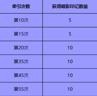 当牵引达到一定次数可以获得暗影印记,详情见下:
