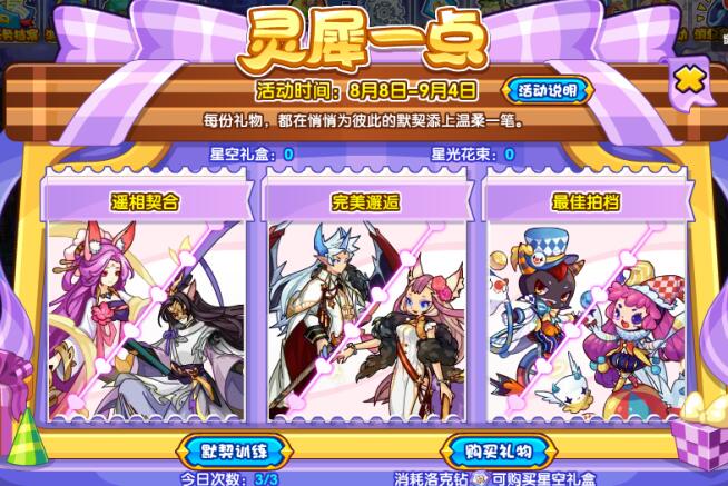 不过需要注意的是,每组搭档赠送的星光花束都有上限,分别最多可赠送15次星光花束,即增加30点默契值,剩下的部分需要通过赠送星空礼盒来补足。