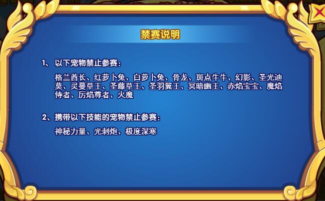 除此之外,这个模式下还有一些额外的限制,接下来我们就打开禁赛说明看看吧!