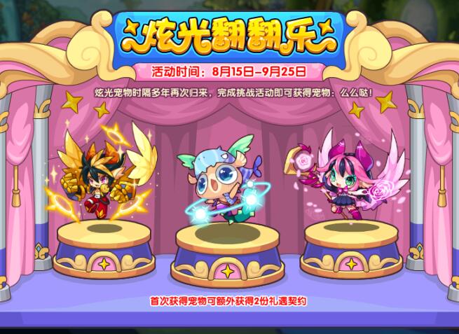 炫光宠物时隔多年再次归来,完成挑战活动即可获得宠物:么么哒!另外,么么哒,土豪金和玫瑰粉均可通过活动一键获得!