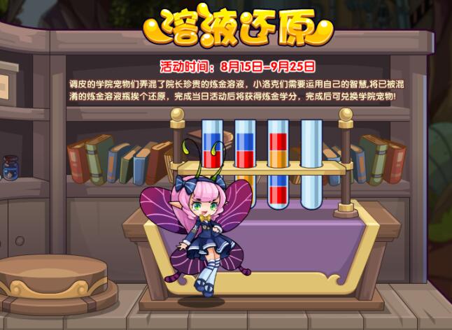 调皮的学院宠物们弄混了院长珍贵的炼金溶液,小洛克们需要运用自己的智慧,将已被混淆的炼金溶液挨个还原,完成当日活动将获得炼金学分,完成后可兑换学院宠物。