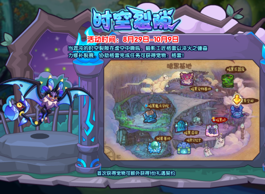 再来看看活动,本周梦影世界的格雷和亚安也将与我们正式见面!格雷被称为梦影世界的暗影工匠,协助它修补裂痕,即可获得宠物格雷!而亚安则有幽影刺客的称号,据说它的飞刃刀刀必达,一起随亚安练习飞刃,达到一定熟练度即可获得宠物亚安!