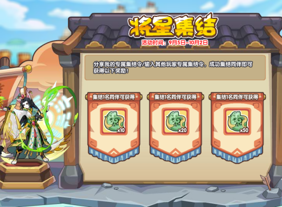 分享我的专属集结令/输入其他玩家专属集结令,成功集结同伴即可获得奖励!