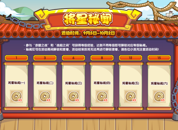 参与“赤壁之战”和“战船之间”可获得补给点数,达到不同等级即可解锁对应等级秘闻,成功观看秘闻后还和获得“五铢”奖励。
