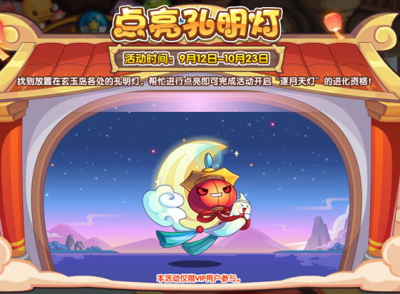 找到放置在玄玉岛各处的孔明灯,帮忙进行点亮即可完成活动开启“逐月天灯”的进化资格!(本活动仅限vip用户参与。)