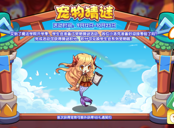 又到了魔法学院开学季,学生会准备了宠物猜谜活动,各位小洛克准备好迎接考验了吗?完成活动可获得猜谜积分,积分可兑换学生会系列宠物哦!