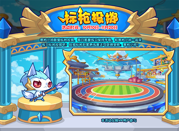 寒枪小帅酷爱标枪投掷,每日都要练习保持手感。和寒枪小帅一起来练习标枪投掷吧!投掷标枪积累熟练度还可获得宠物:寒枪小帅!(本活动仅限VIP用户参与)