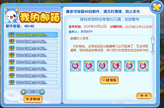 奖励将下发至邮箱,请预留至少1封邮件空间!