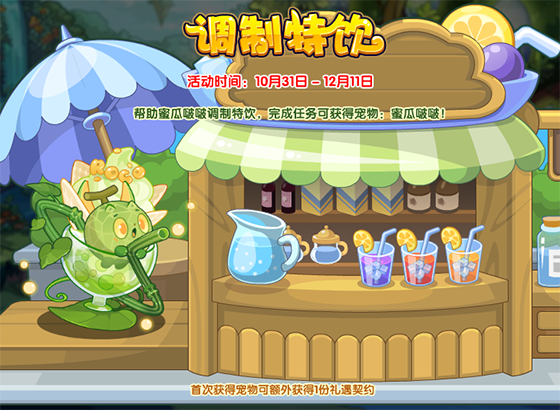 帮助蜜瓜啵啵调制特饮,完成任务可获得宠物:蜜瓜啵啵!
