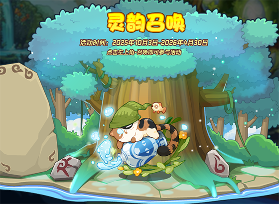 再来看看活动吧!本周灵韵召唤迎来了更新,春困狸奴闪亮登场!它悠闲惬意打呼噜的模样,简直把小编萌化了!喜欢它的小洛克,点击左上角-召唤,即可前往召唤!