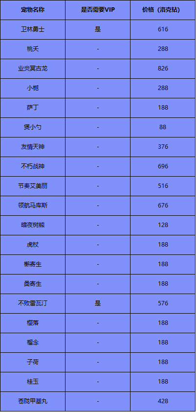 ● 本次更新后,常驻随机可刷出宠物新增宠物如下: