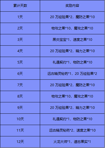 该活动为累计签到,累计签到12天即可领取全部奖励啦!小编替大家整理好了具体的签到奖励内容,一起来看看吧!