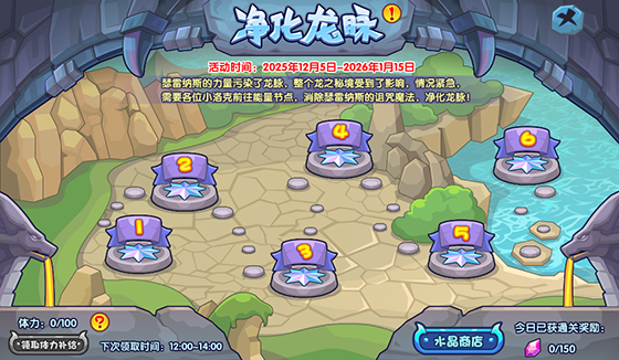 瑟雷纳斯在6个能量节点设置的诅咒法阵正在污染龙脉,亟待消除。小洛克们需要前往各个能量节点,消除诅咒魔法,净化龙脉,获得永恒水晶奖励!