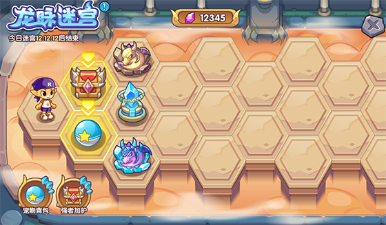 在玩法中,小洛克们需要选择不同的路径,前往迷宫深处。路径中会遇到各种各样的事件,包括但不限于获得一只新的宠物,获得/升级一个强者祝福,挑战迷宫中被瑟雷纳斯控制住的宠物。