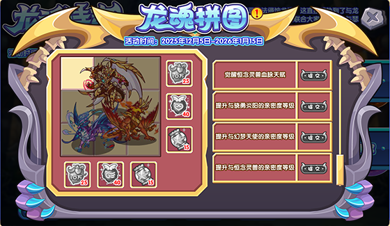 通过“龙魂诗章”活动界面,点击“龙魂拼图”按钮,即可打开功能界面。