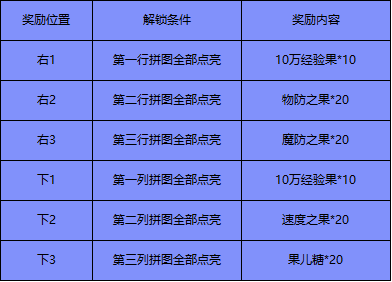点亮任意一整行/列拼图,解锁对应奖励。