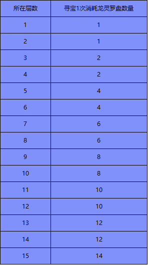需要注意的是随着寻宝层数的增加,寻宝1次消耗的龙灵罗盘数量会上升,详细信息小编帮大家整理出来了。