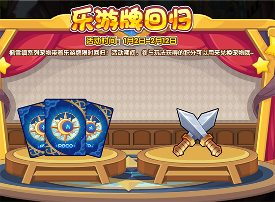枫雪镇系列宠物带着乐游牌限时回归!活动期间,参与玩法获得的积分可以用来兑换宠物哦~