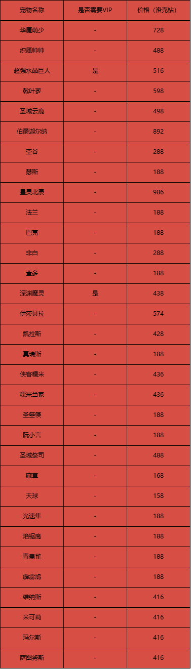 本次更新后,常驻随机可刷出宠物新增宠物如下: