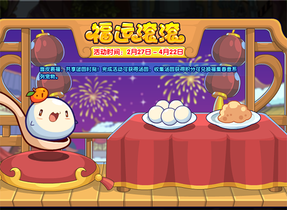 面皮裹福,共享团圆时刻!完成活动可获得积分,收集积分可兑换福集春意系列宠物!