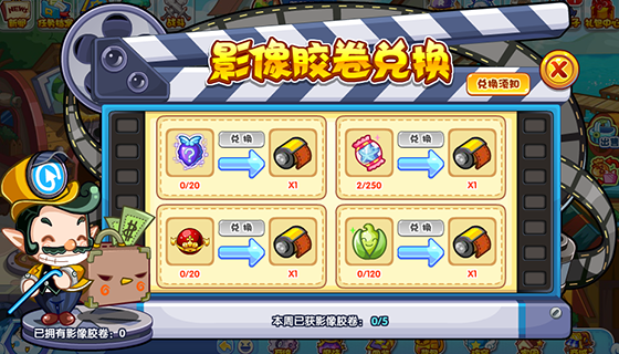 目前计划中可兑换成影像胶卷的道具有:遗忘果实,果儿糖,国王球,开心豆。