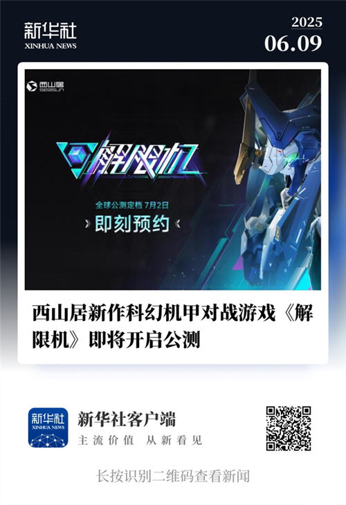 这款重量级新作的动向也引起了新华社的关注,并于今日发文爆料《解限机》于全球知名电子游戏展会“夏日游戏节”上正式揭晓公测日期——2025年7月2日。制作人郭炜炜将于6月9日晚进行全球直播,详细介绍游戏优化与更新内容。